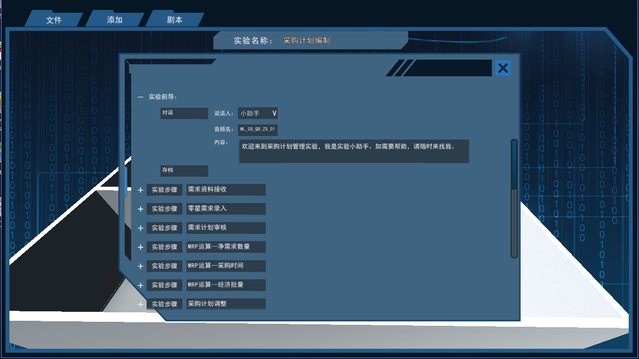 平台将企业场景与实验资源相融合,进行实验场景和流程的配置,满足用户自定义实验的要求。可以根据用户设计完成的实验流程和实验剧本,进行实验场景和实验流程的编辑,将实验场景与实验流程进行融合。